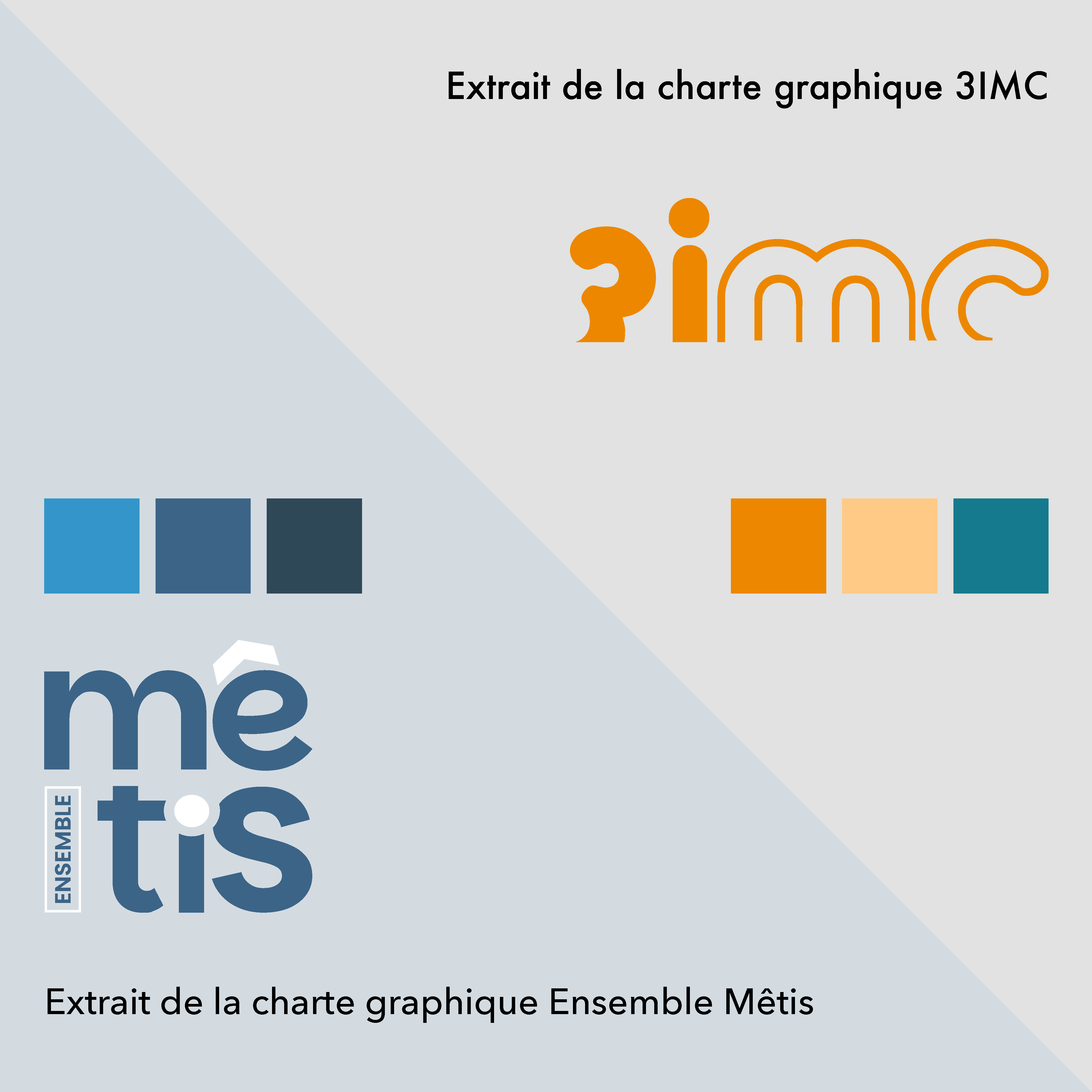 Je me suis ensuite occupée de la charte graphique de l’Ensemble Mêtis. Ici, je suis partie de zéro : j’ai réalisé un logotype, choisi des couleurs et défini les typographies à utiliser en suivant les directives fournies par le client. Pour le logotype, j’ai utilisé le logiciel Adobe Illustrator. J’ai choisi un logotype typographique pour garder une cohérence avec celui de 3IMC, mais également pour respecter la volonté de simplicité du client. Les deux chartes graphiques ont été mises en page sur le logiciel Adobe InDesign.